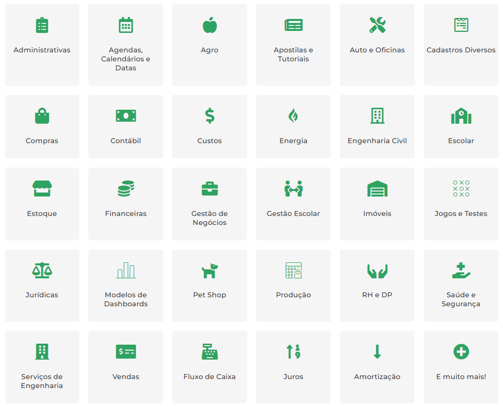 Esse é um pacote com +13mil planilhas profissionais 100% editáveis que serve para tudo o que você precisar, poupando muito do seu tempo!